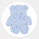 Pale Blue Pastel Gingham Teddy Bear Runder Aufkleber
