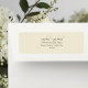 These modern minimalist wedding return address lables feature a contemporarty set of fonts in black for the sender address against a pale dusty yellow background.