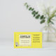 Auf der Vorderseite dieser Visitenkarte befindet sich ein zeichn einer Box auf einer Palette, die von einem Paletten-Jack angehoben werden soll. Es gibt Platz für Ihren Firmennamen, Slogan und Website auf der Box geschrieben werden. Die Erholung Ihrer Kontaktdaten gehen Sie neben das Feld auf der rechten Seite. Der Rücken ist leer. Eine gute Karte für Lagerhäuser, Logistik, Lager, Transportunternehmen, Palettenhändler, Palettenhändler, Paletten-Jack-Händler, Palettenreparaturen, Jack, Fracht, Transport, Fracht und Lieferanten von Kisten, Verpackungen und Versandmaterial. Derzeit ist der Hintergrund gelb und der Text schwarz. Aber man kann es in jede Farbe ändern, die man mag.