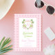Dieses Bachelorette Weekend Invitation besticht durch ein prächtiges, altmodisches Design mit rosa und grünen Palm Beach prächtigen Sesseln und Sonnenschirmen, umgeben von Palmen. Die Rückseite hat ein rosa-weißes Rohrleitungsmuster. Sie können sich mit Ihren Veranstaltungsdetails personalisieren.