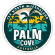 Das Vintage Design der Palm Cove Far North Queensland Australia besticht durch eine beeindruckende Silhouette von Palmen gegen den Ozean und einen leuchtenden Sonnenuntergang - ein großartiger Sake für Vanille, Reisende, Abenteurer und alle, die Australien erkunden möchten.