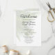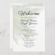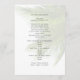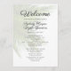 Hochzeitsvorschau für den tropischen Strand mit Palmenblättern. Weiß mit schwarzem, benutzerdefiniertem Text auf beiden Seiten, dieses Programmdesign hat hellgrüne Blätter als Hintergrund.