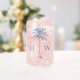 Dieses inspirierte Glas-Trinkglas an der Küste verfügt über einen klassischen Palmenpalmenbaum in Blau mit einem Monogramm, das Sie mit Ihrer Auswahl an Initialen personalisieren können. Ideal für personalisierte Geschenktaschen.