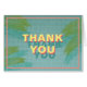Schwimmbad Dankeschön Card mit illustriertem Schwimmbad mit Wasser und Palmenfronten im modernen Stil der Mitte des Jahrhunderts. Zu den Designs zählen Blues, Pinks, Palmenfronten, Swimmingpool und Retro-Design.