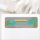 Palm Pool Address Label mit illustriertem Schwimmbad Wasser und Palmenfronten in modernem Stil. Zu den Designs zählen Blues, Pinks, Palmenfronten, Swimmingpool und Retro-Design. Enthält Vorlage für die individuelle Anpassung.