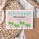 Les invitations à la fête d'anniversaire d'été pour votre petit bain de plage comprennent quatre illustrations de palmiers verts le long du fond sur un arrière - plan rose pâle, avec "beach bash" en haut en lettres rétro. Personnalisez avec les détails de votre fête d'anniversaire en utilisant le modèle.
