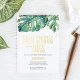 Tropische und dennoch elegante personalisierte Kalligrafien umrahmen Ihre Veranstaltungsdetails mit einem Rahmen aus einfachen Goldkonfetti und tropischer Vegetation auf einem knackigen, weißen Hintergrund. Ihre Veranstaltungsdetails sind Set in einem einfachen serifenlosen Sans und handgeschriebenen Skripttyp in echter Goldfolie. Ideal für einen Palm Springs Beach Bachelorette Weekend Girl's Trip. Um niedlichere Einladungen für Hochzeiten und Junggeselinnen-Abschied zu sehen, besuchen Sie uns auf der Website www.zazzle.com/dotellabelle