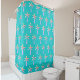 This Palm Springs Turquoise Blue cloth shower curtain with pastel palm trees is so much fun! Playful multicolor soft watercolor hues have a real beach island vibe, even if you're not near the ocean. Midcentury modern style.