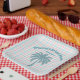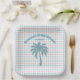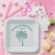 Mit diesem weißen rosa Azurblau mit karierten Formen, das eine coole Palme illustriert, ein unvergessliches Brautparty.