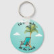 Hübscher Liegestuhl und Palmenkunst auf türkisfarbenem/türkisfarbenem, türkisblauem/schaumgrünem Hintergrund. Fakultative Textvorlage sagt, dass ich lieber am Strand sein möchte. Erstellen Sie Ihre eigene Stranddesign-Schlüsselkette, indem Sie den Text auf Wunsch ändern.