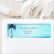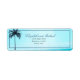Ein blau-weiß Palm Tree elegante persönliche Rücksendeadressen-Aufkleber. Eine elegante Palme ist über den Namen auf einem Aqua-Hintergrund. Die Informationen werden leicht auf Ihre geändert. Das moderne Skript kann leicht für Ihre eigenen Informationen geändert werden. Das individuelle Label ist eigenständig, aber es gehört zu einer Suite von Hochzeitsfeststellungen bei Just Fine Designs. Sehen Sie die Sammlung über den Link auf dieser Seite .