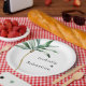 Die Teller aus Palmenblättern sind mit tropischen Aquarellpalmen gestaltet, die auf einem hellen, weißen Hintergrund das traumhafte Ambiente einer Hochzeit in Urlaubsort widerspiegeln. Dieses Design strahlt die Romantik der Sandküste und der Schaukeln aus, die sich perfekt für Paare eignen, die ein unvergessliches Fest verbringen möchten. Für personalisierte Koordination oder Fragen, zögern Sie bitte nicht, uns zu erreichen.