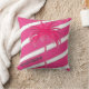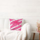 Palm Tree Hot Pink Stripe Personal Throw Kissen. Ein helles, modernes Design mit eigenem Namen. Der Name kann gelöscht werden, wenn Sie ihn nicht gewollt haben. Heiß rosa mit weißen Streifen und auf der Rückseite heiß rosa mit gemusterten weißen Palmen. Modernes und schicke Sommerkissen.