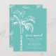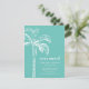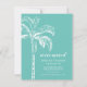 Faire-part tropicale en mouvement avec un palmier posé sur un arrière - plan bleu aqua avec un dos assorti.