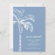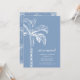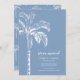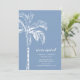Faire-part tropicale en mouvement avec un palmier posé sur un arrière - plan bleu avec un palmier assorti.