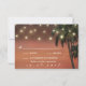 Palm Tree Sunset Beach Wedding RSVP Cards - dispose de lampes à cordes et de palmiers sur un arrière - plan au coucher du soleil. Afficher les conceptions correspondantes trouvées dans la collection sur cette page.