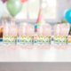 Schöne Aquarellpalmen umsäumen den Strand dieses einzigartigen Glases mit dem Namen des Paares und dem Hochzeitstag.