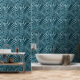 Palm- und Tropenblatt abstrakt in blau-grün grau Tapete