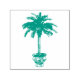 Digitale Wiedergabe einer getöpften Sagopalme in einer dekorativen Planter-Briefmarke, die sich selbst färbt