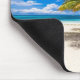 Dieses Foto kennzeichnet eine Palme, die allein auf einem weißen sandigen Strand stehend ist.