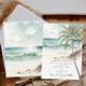 Eine wunderschöne Aquarellmesse-Hochzeitseinladung mit Palmen mit Lichtern und einer Strandlandschaft und einer koordinierenden Rückseite. Einfach die verfügbaren Textfelder bearbeiten oder löschen, um die Informationen mit Ihren eigenen Daten für eine berufliche und benutzerdefinierte Oberfläche zu personalisieren. Viele passende Artikel in dieser Palmen/Strand Kollektion. Bitte besuchen Sie meinen Shop, um das komplette Sortiment zu sehen. Aufkleber und Adressetiketten sind ebenfalls erhältlich.