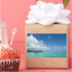 Autocollant photo rectangulaire avec une petite île avec un palmier dans le lagon turquoise de l'île tropicale Bora Bora près de Tahiti en Polynésie française.