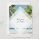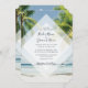 Cet hôtel design dispose de palmiers tropicaux sur une plage. La belle verdure des palmiers contraste avec le ciel bleu et l'eau. L'élément diamant blanc opaque met la typographie moderne au premier plan. Une parfaite fusion entre moderne et chic. Un design de verdure palmier idéal pour une destination de plage tropicale mariage. Conception d'invitation de mariage de plage avec des éléments modernes. Des articles de papeterie mariage correspondants et d'autres formats d'invitation de mariage sont également disponibles.