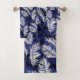 Feuilles de palmiers blancs sur un arrière - plan bleu indigo, recouverts de frondes de palmiers plus bleues. Parfait pour les chambres à thème asiatique, cottage ou plage.