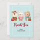 Carte de remerciements avec une mignonne illustration représentant un lapin, un ours et un cerf vêtus d'un engin festif. Adorable et capricieux.