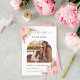 Eine moderne Hochzeit Save the Date Foto Karte. Die Einrichtung besteht aus goldfarbenen Blüten in Rosa und Rose und Pampasgras. Personalisieren Sie Ihre Foto- und Hochzeitsdetails und fügen Sie diese hinzu.