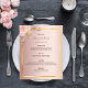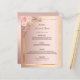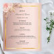 Eine elegante bohemianische Hochzeitskarte. Personalisieren und fügen Sie Ihre Namen, Datum und das Hochzeitsmenü. Ein Imitat Goldrahmen und eine schicke Rose Gold Imitate metallisch aussehen Hintergrund. Dekoriert mit rosafarbenen Blumen und Pampas-Gras. Zurück: Rose goldfarbener Hintergrund.