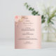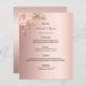 Eine elegante bohemianische Hochzeitskarte. Personalisieren und fügen Sie Ihre Namen, Datum und das Hochzeitsmenü. Eine trendige Rose Gold Imitate metallisch aussehen Hintergrund. Dekoriert mit rosafarbenen Blumen und Pampas-Gras. Zurück: Rose goldfarbener Hintergrund.