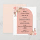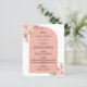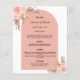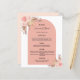 Eine elegante bohemianische Hochzeitskarte. Personalisieren und fügen Sie Ihre Namen, Datum und das Hochzeitsmenü. Dekoriert mit rosafarbenen Blumen und Pampas-Gras. Zurück: Rose Gold Hintergrund.