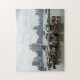 Panama-Stadt Skyline mit Fischerbooten im Vordergrund.