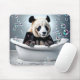 Niedlicher Panda in einer weißen Badewanne mit irisierenden Seifenblasen