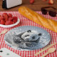 Panda-Bär läuft im Schnee Pappteller