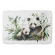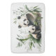 Aquarellfarbener niedlicher Panda-Bär in Bambus-Blätter mit einem Krug auf weißem Hintergrund.