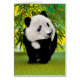 3D-digitale Darstellung eines Panda-Bären und grüne Bambus-Pflanze auf einem bunten Hintergrund