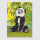 3D-digitale Darstellung eines Panda-Bären und grüne Bambus-Pflanze auf einem bunten Hintergrund