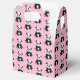 Gastgeschenk-Box in rosa in einem Gable-Stil mit einem niedlichen Cartoon Panda-Bären gedruckt. Passen Sie dieses Element an und fügen Sie Ihren eigenen Text hinzu oder kaufen Sie, wie es ist, und fügen Sie ein hübsches Band.