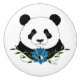 Portrait eines niedlichen Panda Bären mit einer blauen Lotus-Blume in grüner Umgebung