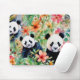 Coole Aquarelllandschaft Malerei Panda Bären in farbenfrohen Blumengarten.