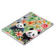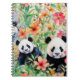 Coole Aquarelllandschaft Malerei Panda Bären in farbenfrohen Blumengarten.