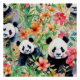 Coole Aquarelllandschaft Malerei Panda Bären in farbenfrohen Blumengarten.