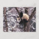 Panda cub playing on tree covered with snow, postkarte