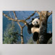 Un panda Dans une affiche d'arbre.a un panda noir et blanc assis au sommet d'un arbre avec une forêt derrière lui et un ciel bleu.c'est une belle photo.