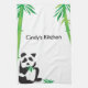 Niedlicher Pandabär, der auf Blätterküchentuch kaut! Fügen Sie Ihren eigenen Namen ihm hinzu, um in Ihrer Küche zu verwenden!