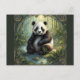 Ein kleiner Panda sitzt im Wald an einem Bach.