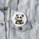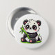 Illustration eines Panda, der bequem auf Bambus sitzt und mit einem spielerischen Lächeln und rosigen Wangen spielt.