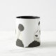 Niedliche Tasse mit zwei Pandas rund um den Bildbereich. Der Hintergrund ist weiß und die Tasse innen schwarz, mit einem schwarzen Griff. Der Panda ist gestrichen.